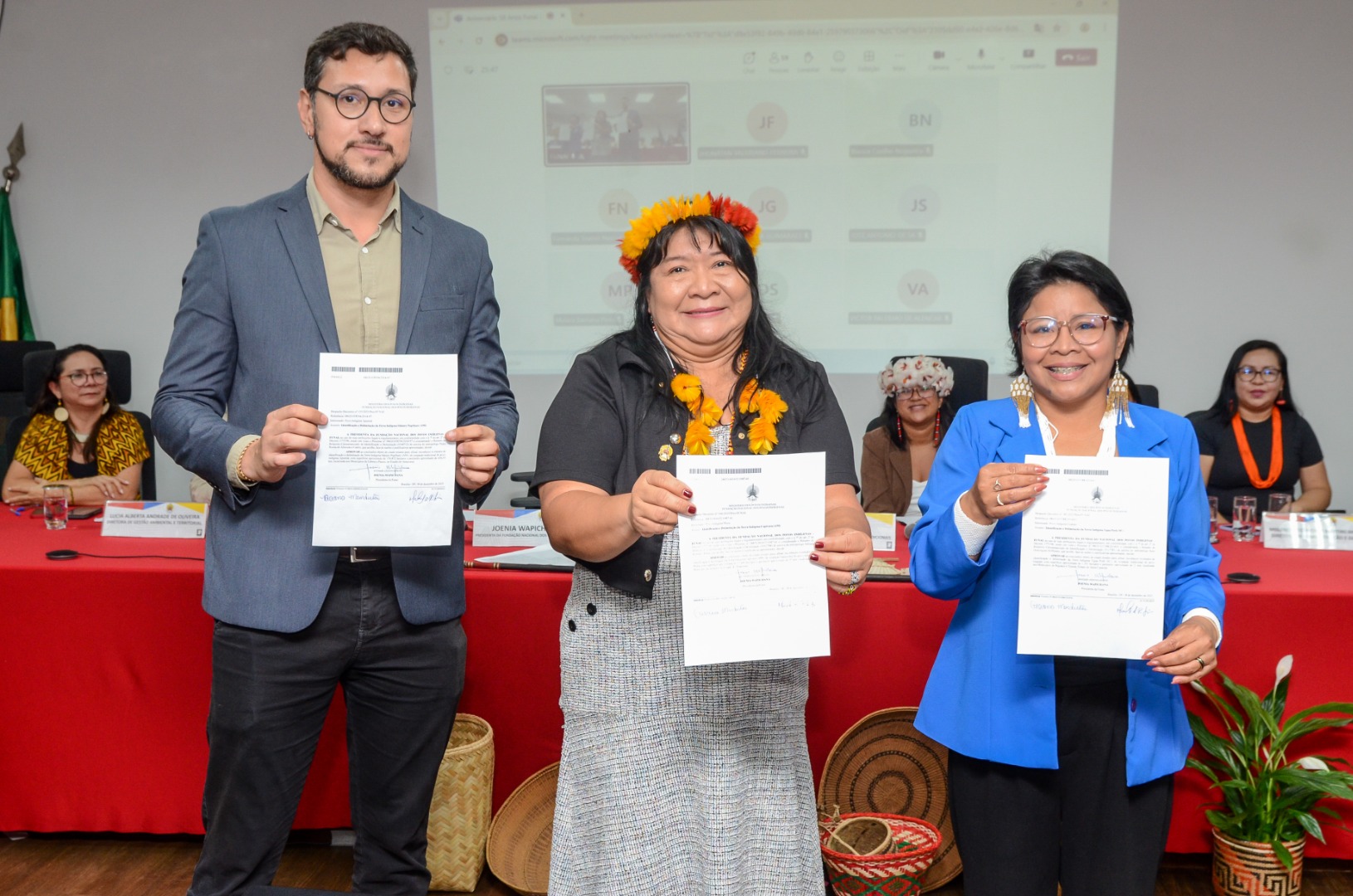 Na cerimônia, a presidenta da Funai, Joenia Wapichana, e o presidente do Instituto Chico Mendes da Biodiversidade (ICMBio), Mauro Pires, assinaram um Acordo de Cooperação Técnica (ACT) com foco na colaboração mútua para a gestão socioambiental de unidades de conservação e terras indígenas. O ato ilustra o compromisso da Funai com o fortalecimento da política indigenista por meio do diálogo e da celebração de parcerias, retomados a partir de 2023. A assinatura do ACT compõe uma série de avanços na política indigenista em 2025.