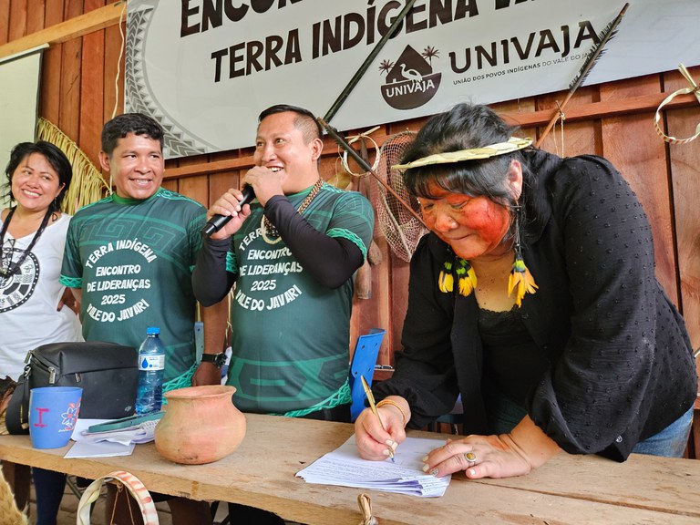 A Fundação Nacional dos Povos Indígenas (Funai) assinou nesta quarta-feira (26) um Protocolo de Intenções com a União dos Povos Indígenas do Vale do Javari (Univaja). O ato ocorreu durante o Encontro de Lideranças da Terra Indígena (TI) Vale do Javari, na Aldeia Txeshe Wassá, do povo Matis. O objetivo do instrumento é aprimorar a atuação da Funai e da Univaja e fortalecer a proteção da TI Vale do Javari. Rico em biodiversidade ambiental e cultural, o território, localizado no estado do Amazonas, abriga a maior concentração confirmada de grupos indígenas em situação de isolamento voluntário do mundo, o que reforça a necessidade de proteção da área.