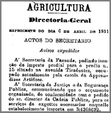 Fonte: Diário Oficial do Estado de SP, 08/04/1911 Disponível em www.imprensaoficial.com.br. Acesso em 10 Out. 2016.