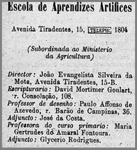 Endereços da escola de Aprendizes Artífices de São Paulo