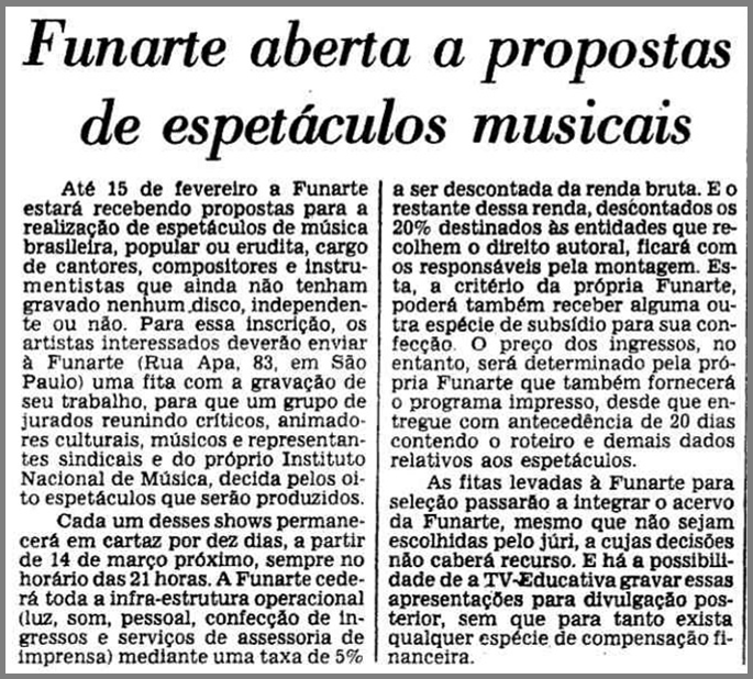 Fonte: Jornal O Estado de São Paulo, 13/01/1984. Disponível em http://acervo.estadao.com.br/pagina/#!/19840113-33393-nac-0015-999-15-not. Acesso em 22 Nov. 2016.