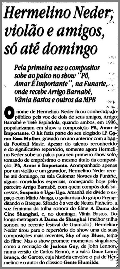 | 16 de maio de 1986 | Marcello Nitsche assumiu a coordenação da Funarte em São Paulo. |