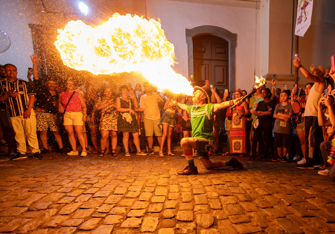 Horários: de quinta-feira a sábado às 20h | Domingo às 19hO espetáculo entrecruza expressões de danças e personagens populares do Brasil. “É uma encruzilhada cênica, na qual os intérpretes, através de músicas e danças, encarnam encantados de todos os cantos do país”, explica o coreógrafo e artista plástico Marcio Cunha, autor e artista do elenco. “O trabalho nasceu do desejo de aprofundamento e expansão desse estudo do sincretismo das rodas de capoeira, ritos, orixás, músicas e itens africanos, além de fantasias e máscaras carnavalescas”, acrescenta ele – que é filho de mestres de capoeira.