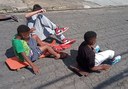 A atividade “Carrinhos de rolimã alegóricos” envolve arte urbana, stencil e brinquedos