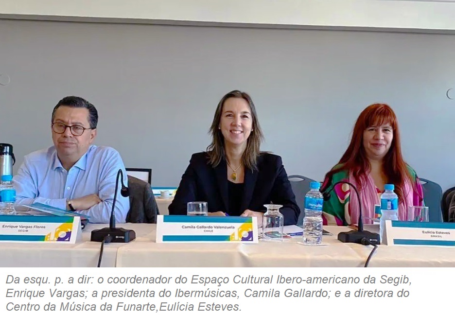 - Da esqu. p. dir.- Coordenador do Espaço Cultural Ibero-americano da Segib,Enrique Vargas; a presidenta do Ibermúsicas,Camila Gallardo; e a diretora do Centro da Música da Funarte,Eulícia Esteves. Foto: L. Giordani - CCOM - Funarte