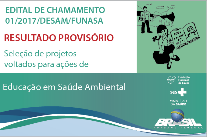 Conforme previsto no Edital de Chamamento Público n° 01/2017/DESAM/FUNASA/MS, o Departamento de Saúde Ambiental divulgou hoje, 17, o resultado provisório da análise, julgamento e seleção das propostas encaminhadas.