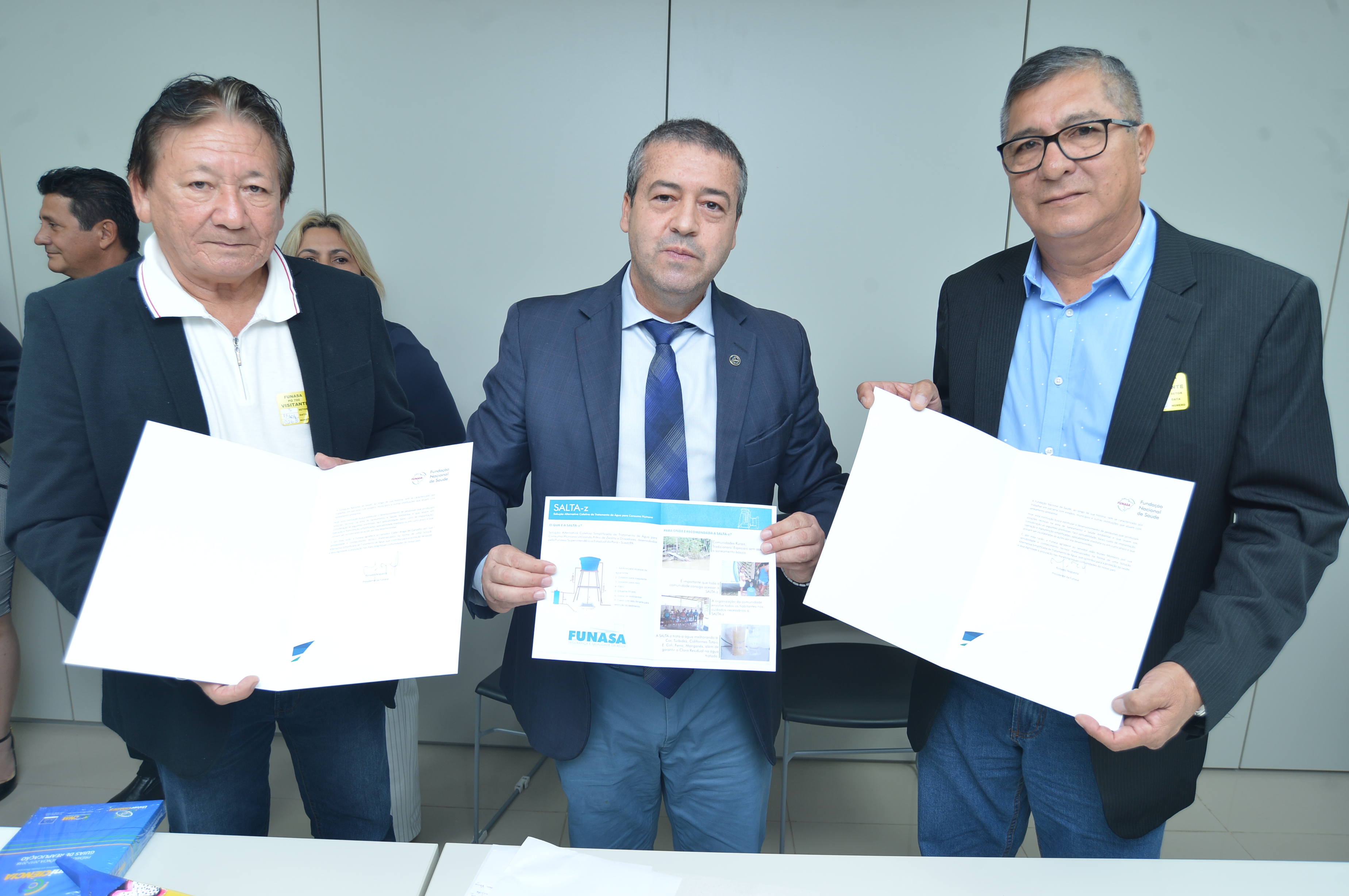 O evento, que teve a apresentação de servidores da Fundação Nacional de Saúde (Funasa) e prefeitos premiados pelo uso da SALTA-z, contou com a presença do presidente Ronaldo Nogueira, o diretor-executivo Márcio Cavalcante, a diretora do Departamento de Saúde Ambiental (Desam) Ociléia Carneiro, o diretor do Departamento de Engenharia em Saúde Púbica (Densp) Ruy Gomide, o diretor do Departamento de Administração (Deadm) Carlos Luis Barroso Junior e o auditor-chefe Rafael Ayoroa Ramos.