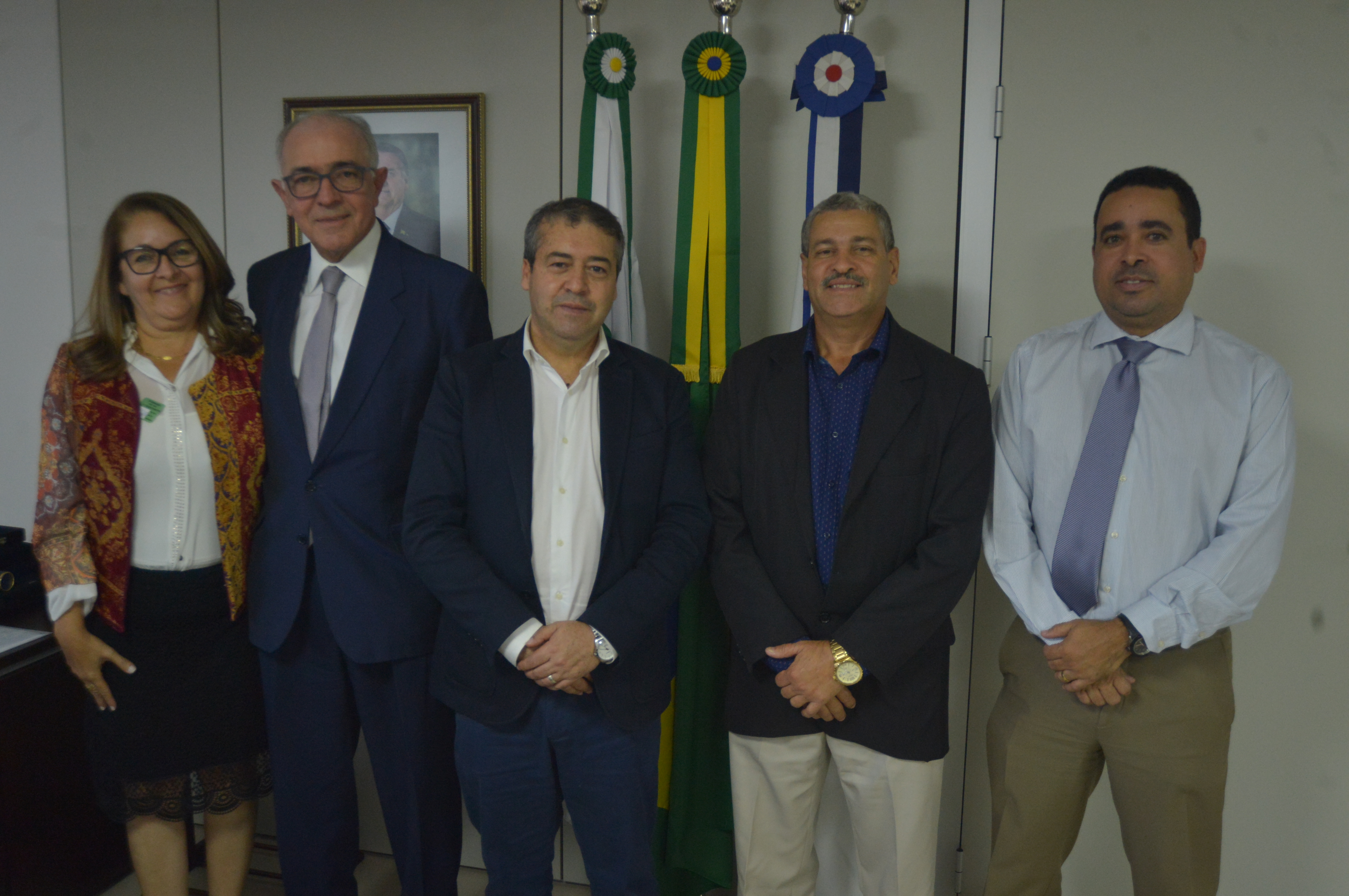 O presidente da Fundação Nacional de Saúde (Funasa) Ronaldo Nogueira recebeu, na tarde desta quarta-feira (17/07), o ex-deputado José Carlos Aleluia, a secretária municipal Sonia Maisa, de Taperoá/BA e os prefeitos Reginaldo Sampaio, de Quixabeira/BA, Tiago Venâncio, de Ponto Novo/BA e além de Rosival Lopes, de Taperoá/BA. O tema principal da reunião foi o andamento dos projetos de esgotamento sanitário para esses municípios.