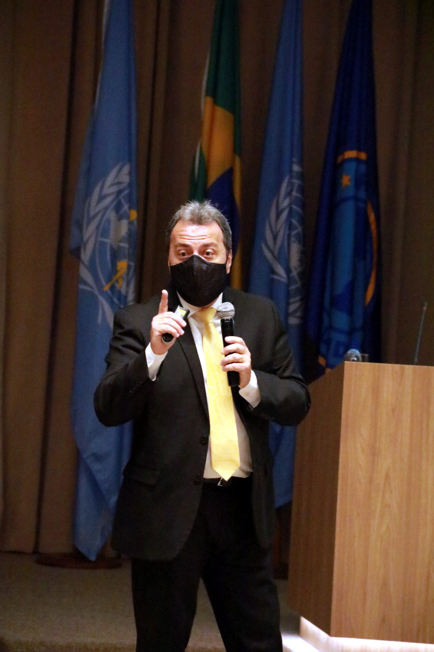 No final da palestra, o superintendente do Ministério da Saúde no Acre, Éden Miranda, falou da parceria com a fundação nos estados e entregou o Certificado de Palestrante ao coronel Giovanne Silva. "Sempre trabalhamos com a Funasa nos estados pelo Brasil, nas ações integradas, fortalecendo o SUS. O presidente Giovanne fez uma excelente palestra. Em nome do Ministério e dos nossos colegas superintendentes, gostaríamos de parabenizá-lo e entregar este Certificado", ressaltou.