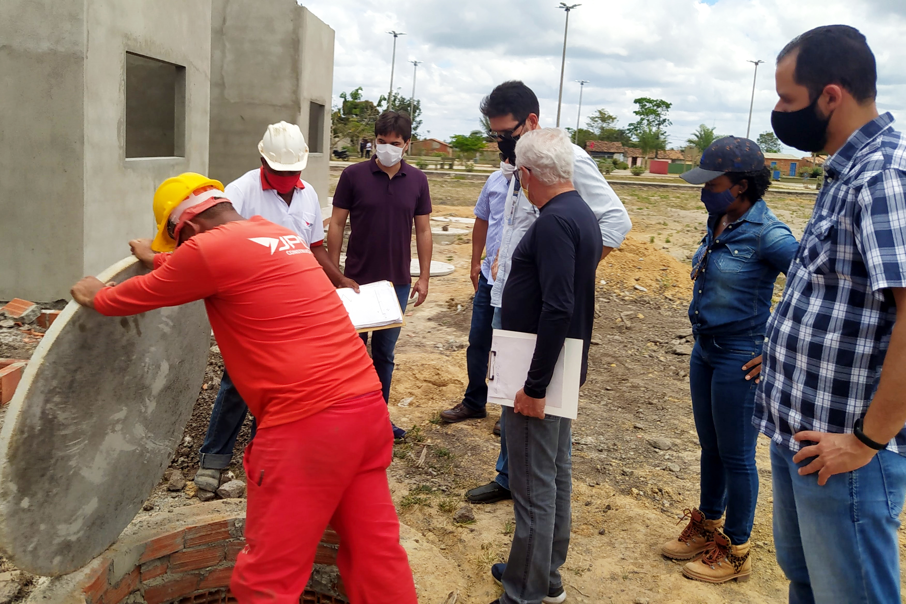 - Técnicos da Funasa, da prefeitura e da construtora responsável inspecionando a obra de MHCDCFoto: Charles Lins/Suest-SE