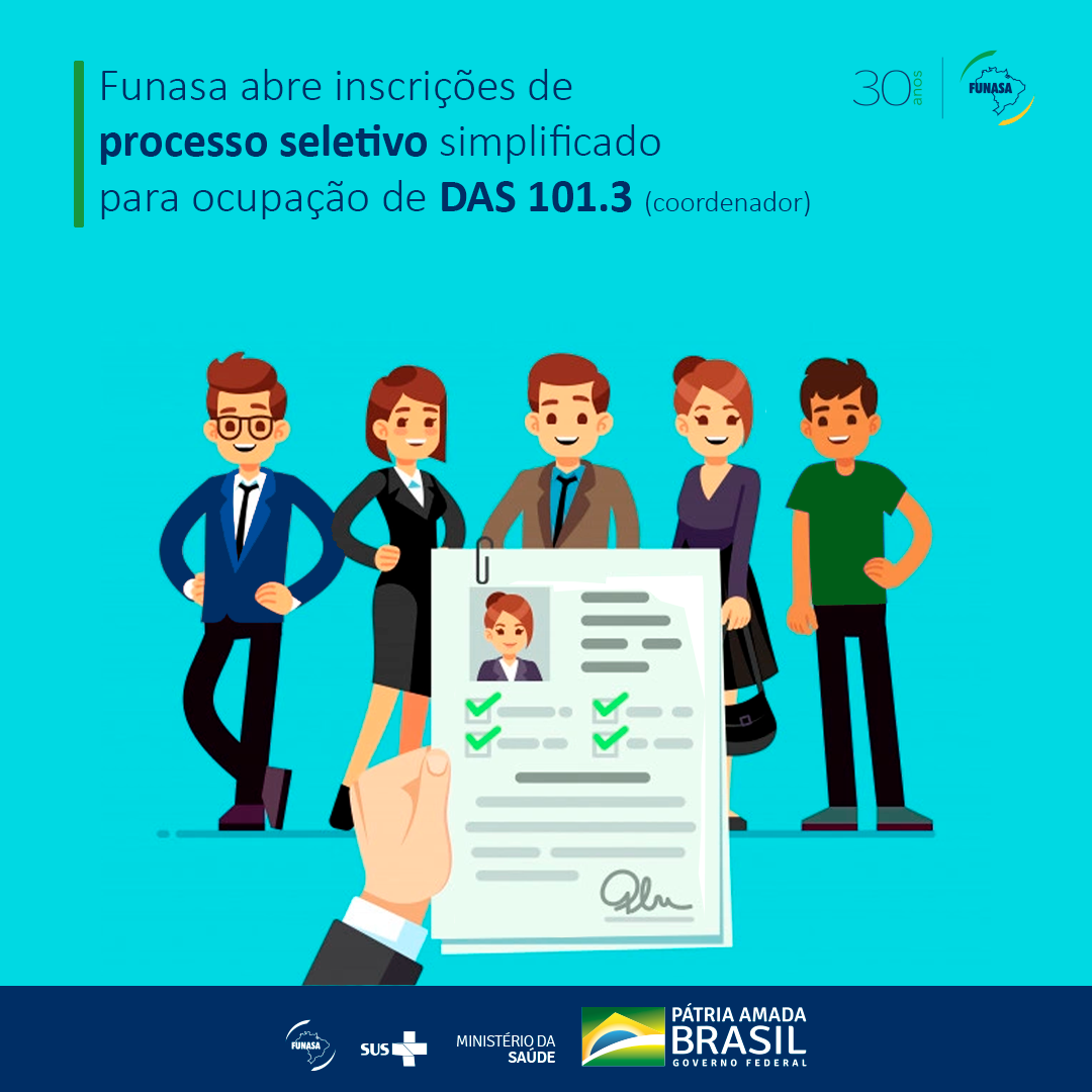 Funasa abre inscrições de processo seletivo simplificado para ocupação de DAS 101.3 (coordenador)