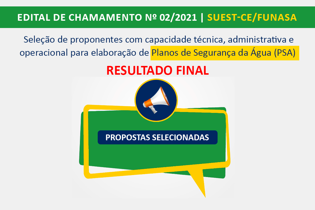 Clique aqui para ler o resultado do edital de chamamento nº 02/2021/SUEST-CE/FUNASA
