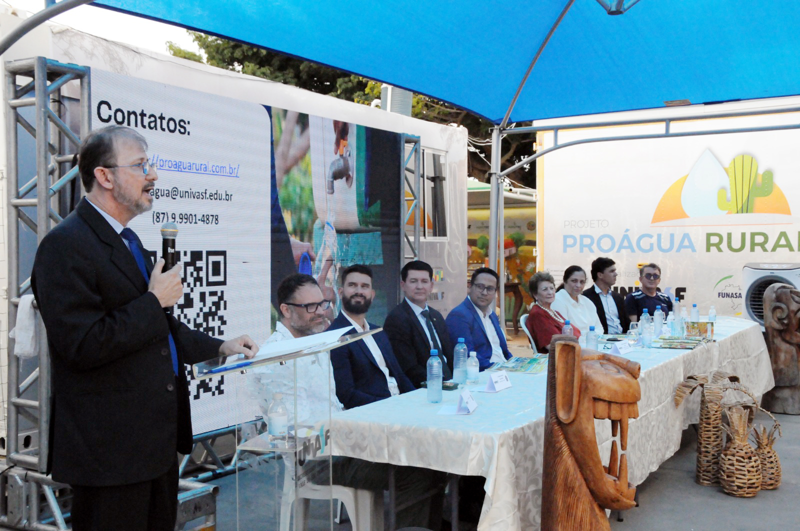 O evento ocorreu no Campus Ciências Agrárias (CCA) da Univasf, em Petrolina (PE), em comemoração ao Dia Mundial da Água, e contou com a presença de diversas autoridades, dentre elas, o presidente interino da Funasa, Alexandre Ribeiro Motta; a superintendente estadual substituta da Funasa em Pernambuco (Suest-PE/Funasa), Helena Magalhães e a vice-reitora da Univasf, Lucia Marisy de Oliveira; além dos coordenadores do Proágua Rural, professores Anderson Miranda e Daniel Pifano. Participaram, ainda, representantes de vários municípios atendidos pelo projeto, além de servidores e estudantes da Univasf e de instituições de ensino e pesquisa da região.