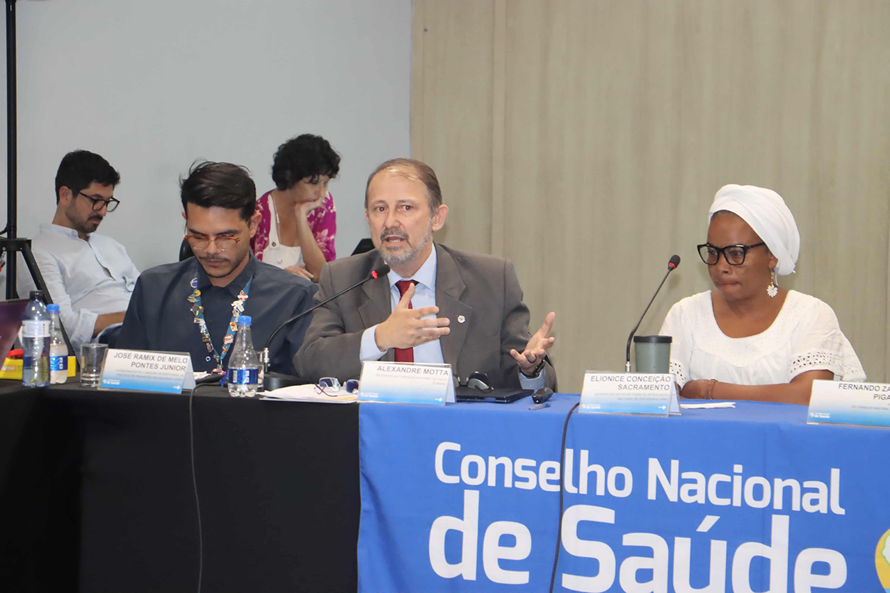 Alexandre Motta, presidente da Funasa (2º da direita p/ a esquerda), apresentou o PNSR na reunião do CNS. Foto: Daniel Ribeiro/Funasa.