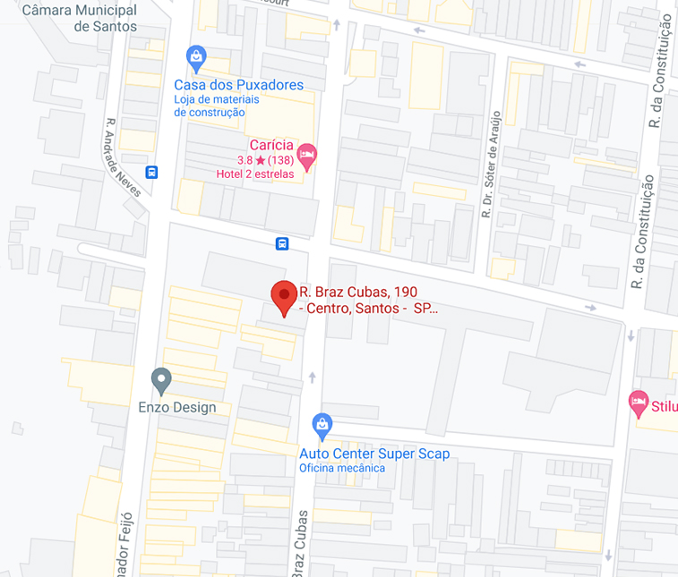 Endereço: Rua Bras Cubas, 190 - Centro, Santos/SP, CEP: 11013-915