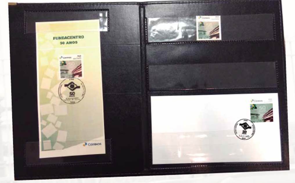 Peças filatélicas dos 50 anos da Fundacentro (Artes do selo e do carimbo desenvolvidas pelo designer Flávio Galvão)