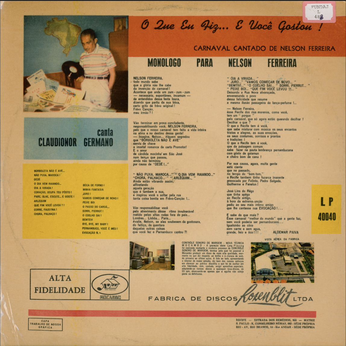 A Fonoteca da Fundação Joaquim Nabuco possui um vasto acervo, incluindo diversos discos citados ao longo do texto, para consultar o nosso acervo, acesse o link: Terminal - Acervo.