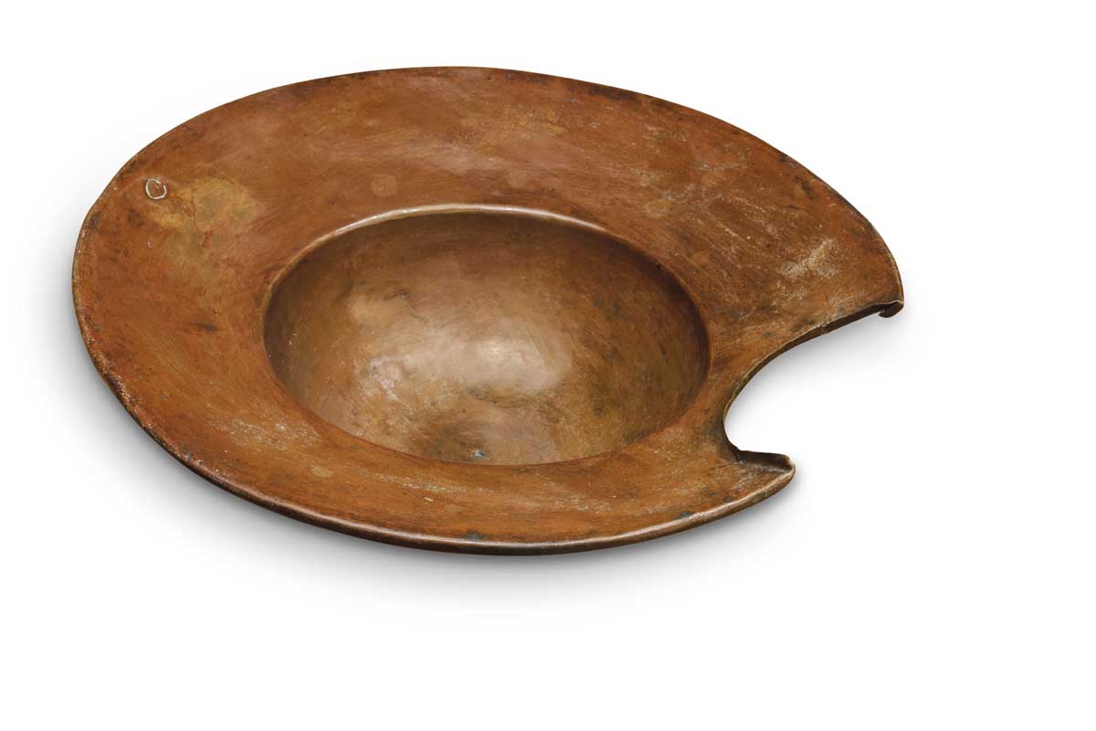 A nossa Bacia de Barbear foi confeccionada provavelmente do século XVII, por autor desconhecido, contudo conhecemos bem seus usos. Como o nome sugere, era instrumento de trabalho utilizado pelos barbeiros e parte destes compunha um segmento específico da mão de obra escravizada, chamados “escravos de ganho”. Tendo maior mobilidade social em relação a outros que habitualmente trabalhavam nas lavouras, os barbeiros escravizados trabalhavam em lojas ou como ambulantes, indo em busca de clientela para, ao final do dia, trazerem os rendimentos para o seu dono ou locatário.