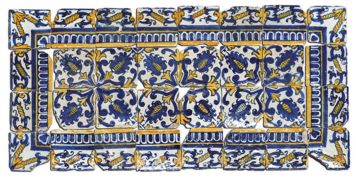 A peça escolhida pertence à coleção doada pela família de Benício Dias, que, segundo classificação do historiador de arte português Santos Simões , é azulejo tipo “Massaroca de Repetição” nas cores azul e amarelo, sobre fundo branco, formando uma composição de 2x2 azulejos, resultando um quadrifólio de espigas de milho e elementos fitomorfos.