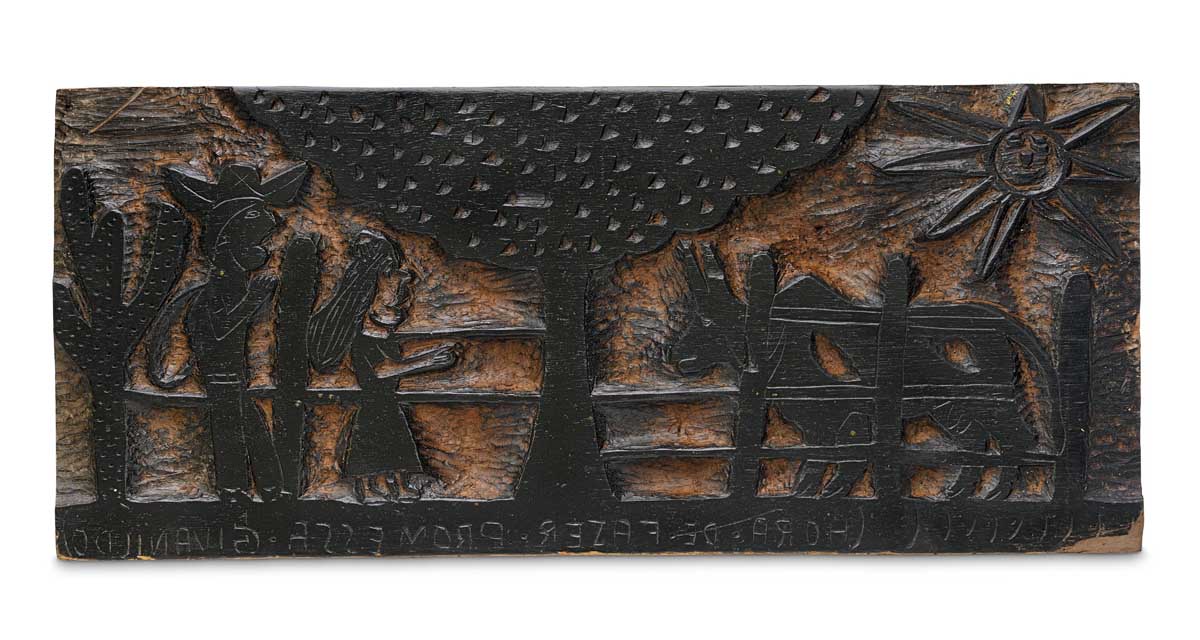 A Hora de Fazer Promessa é uma matriz de xilogravura que retrata uma cena típica do sertão nordestino, em que o devoto cumpre um juramento para alcançar a graça suplicada. A xilogravura é uma técnica onde a matriz de madeira (xilo) é entalhada com a ajuda de um instrumento cortante, deixando a imagem a ser impressa em relevo que, após ser coberta por tinta, é transferida para o papel ou outro suporte, como um carimbo. Conhecida pelos chineses desde o século II, o que expressa esta técnica para além das suas características específicas é a forma como o artista interpreta e retrata a realidade em que vive.