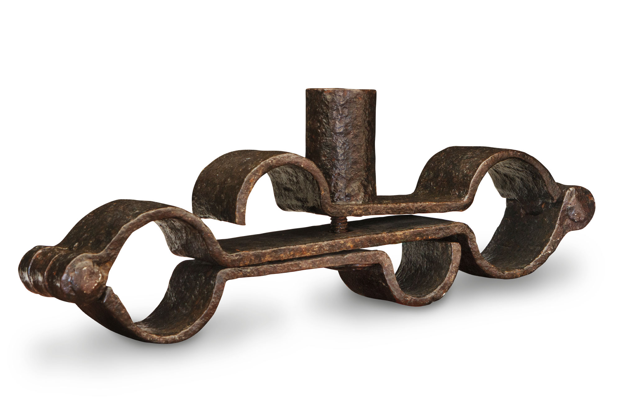 A peça em questão, denominada "Viramundo de Ferro para pernas e braços de escravos", produzida em ferro, foi adquirida juntamente com outras 29 peças do Museu Simoens da Silva, pelo Museu do Açúcar, em 15 de Julho de 1957, no leilão realizado por Horácio Ernani de Melo. Em 1977, o acervo do Museu do Açúcar foi transferido para o Instituto Joaquim Nabuco de Pesquisas Sociais.