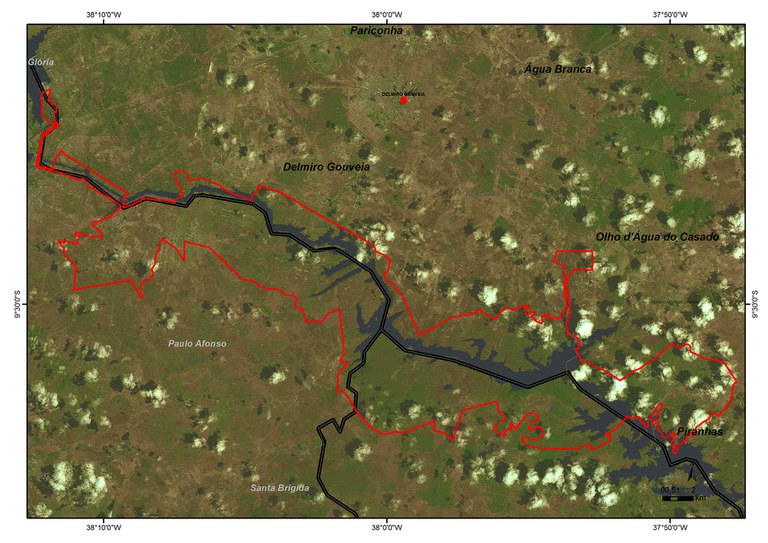 Mapa de localização do Monumento Natural do Rio São Francisco.