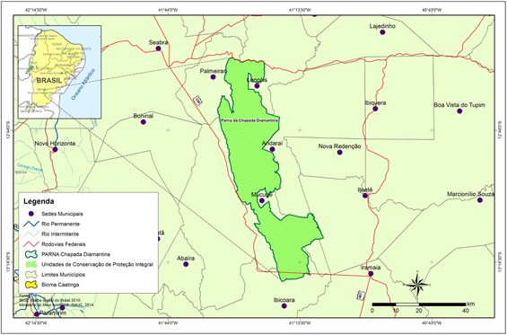 Mapa de localização do Parque Nacional da Chapada Diamantina.