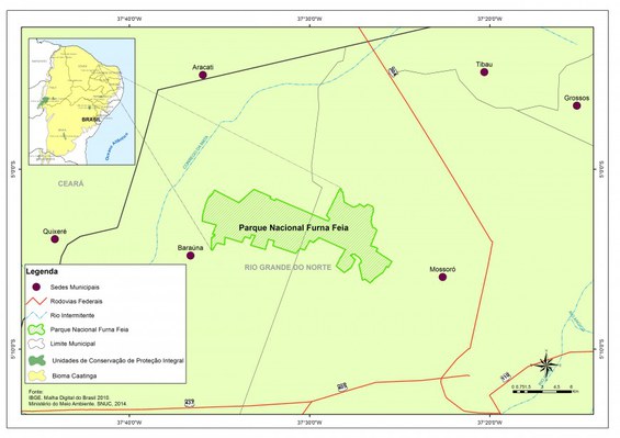 O Parna da Furna Feia possui 8.494 ha e está inserido nos municípios de Mossoró e Baraúna. Esta Unidade de Conservação contribui para a conservação das cavernas e da Caatinga no oeste potiguar. Uma das particularidades desta UC é o cenário espeleológico presente em meio ao bioma Caatinga.