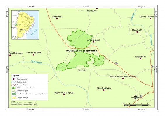 Mapa de localização do Parque Nacional Serra de Itabaiana. Fonte: elaborado pelos autores.