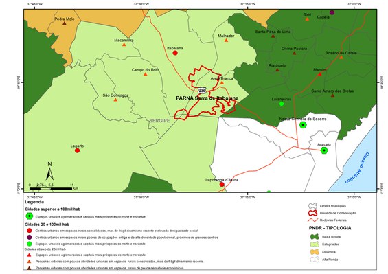 Localização do Parque Nacional Serra de Itabaiana, a PNDR (MI, 2003) e a Tipologia das Cidades (MCid, 2005).