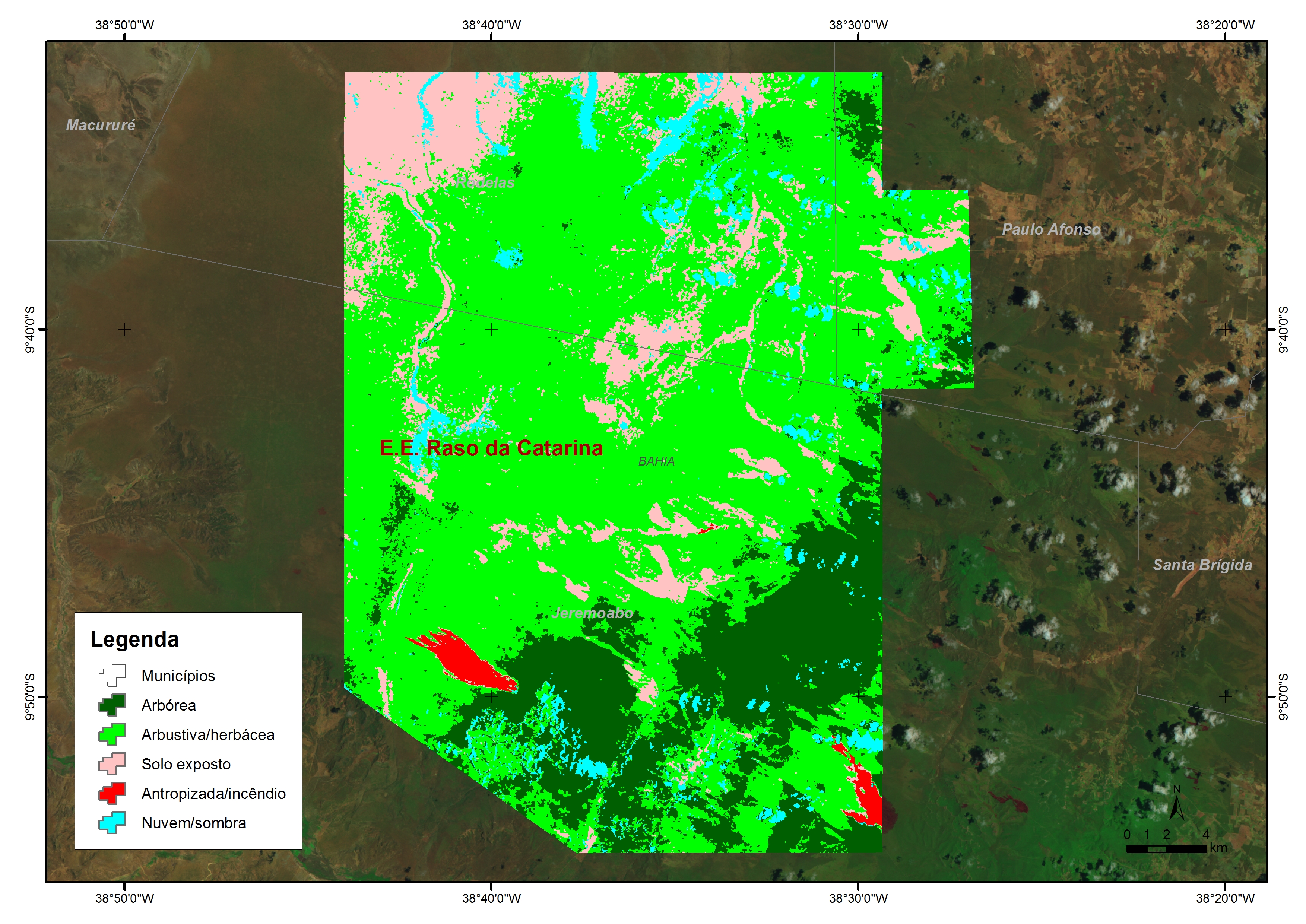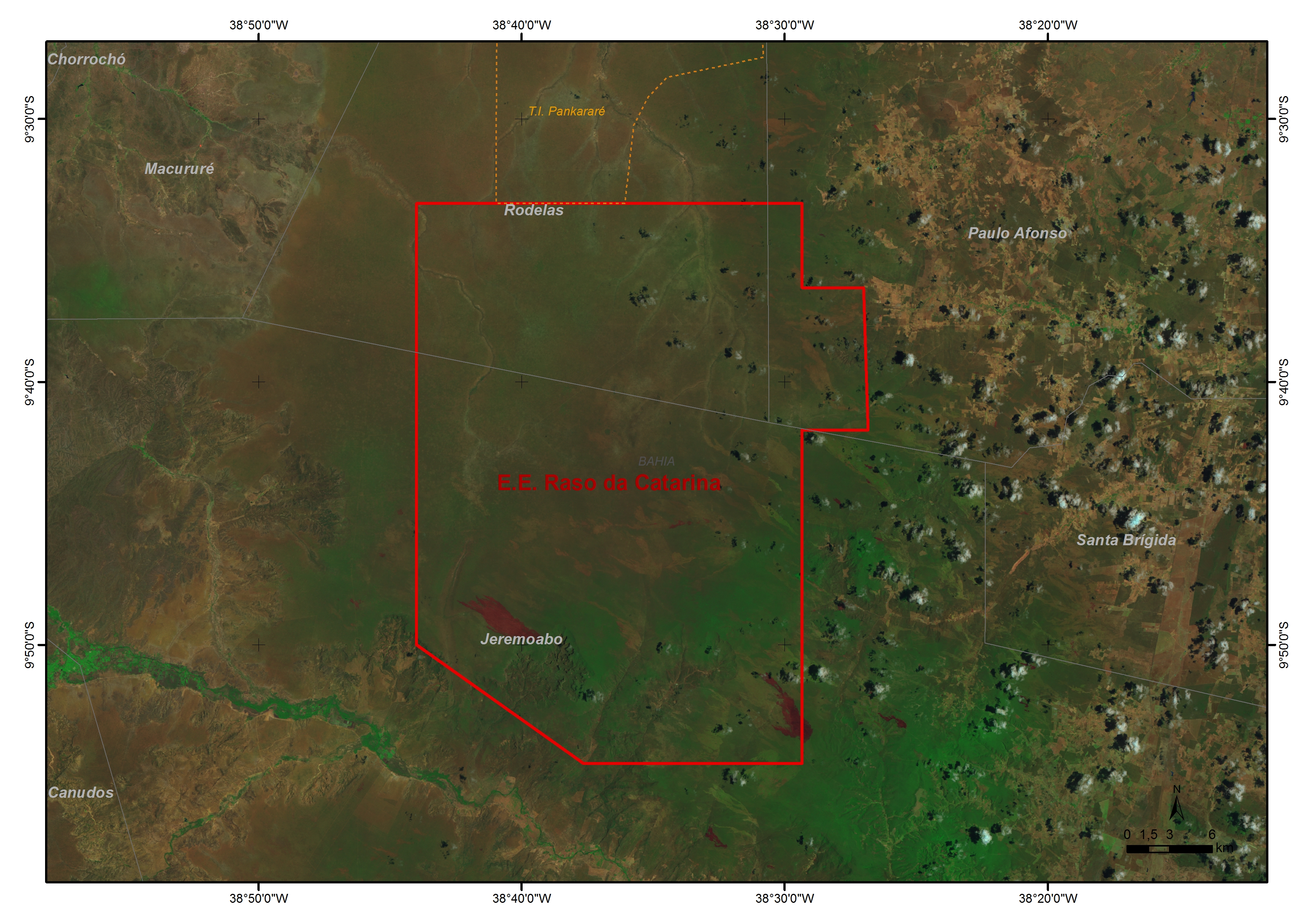 Carta-imagem temática da Esec Raso da Catarina com o entorno em imagem multipestral RGB 543, de 2001.