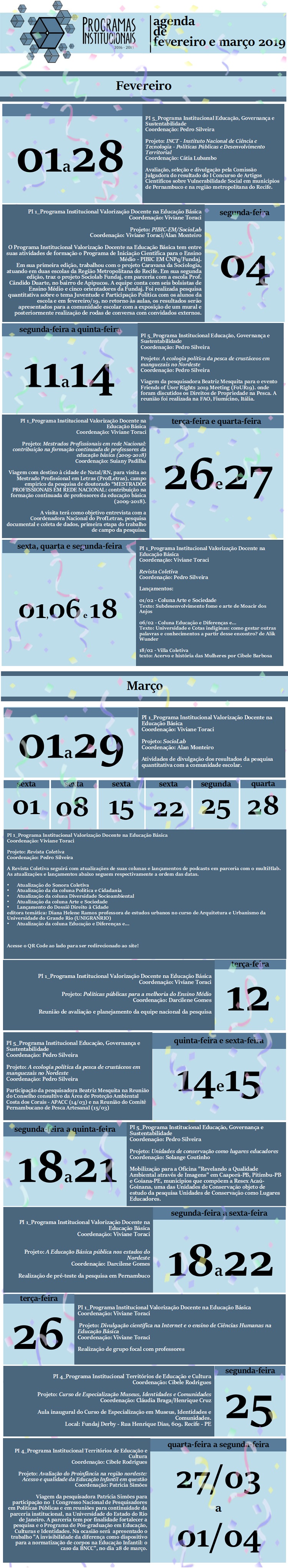Agenda de Fevereiro e Março/2019 dos Programas Institucionais