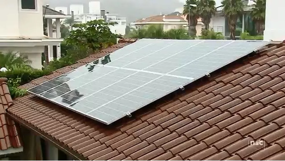 Placas de energia solar instaladas em telhado de casa em SC — Foto: Reprodução/NSC TV