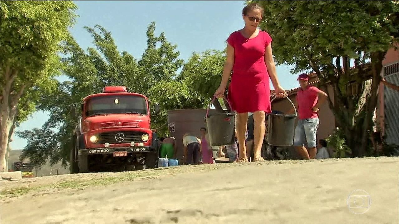"Carro-pipa só dá cinco mil litros d'água. Não dá nem 10 minutos. Num instante acaba tudinho porque é muita gente [retirando água do ponto de abastecimento]", diz a dona de casa Maria Aparecida. "Por isso é tanta correria quando a água chega", completa o aposentado Manuel Vieira do Vale.