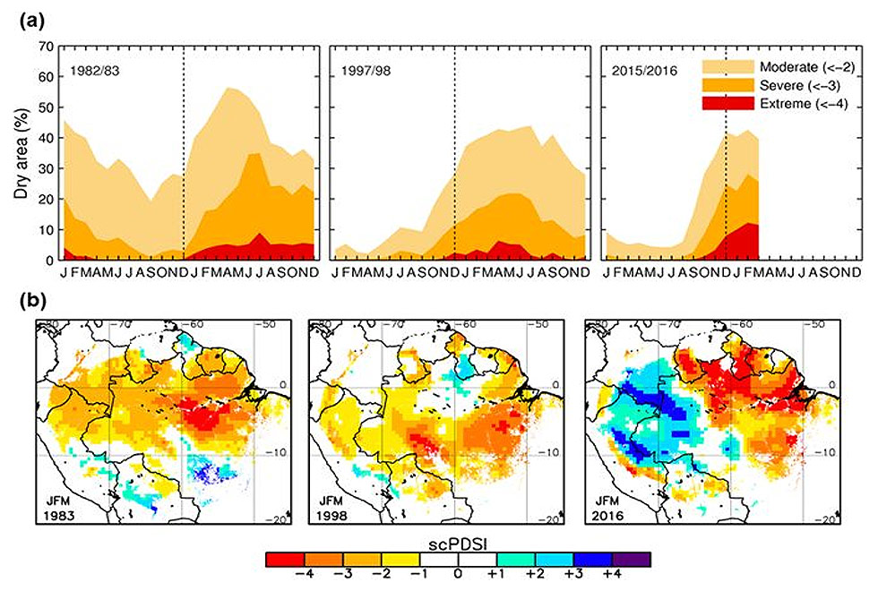 , “Record-breaking warming and extreme drought in the Amazon rainforest during the course of El Niño 2015–2016”.