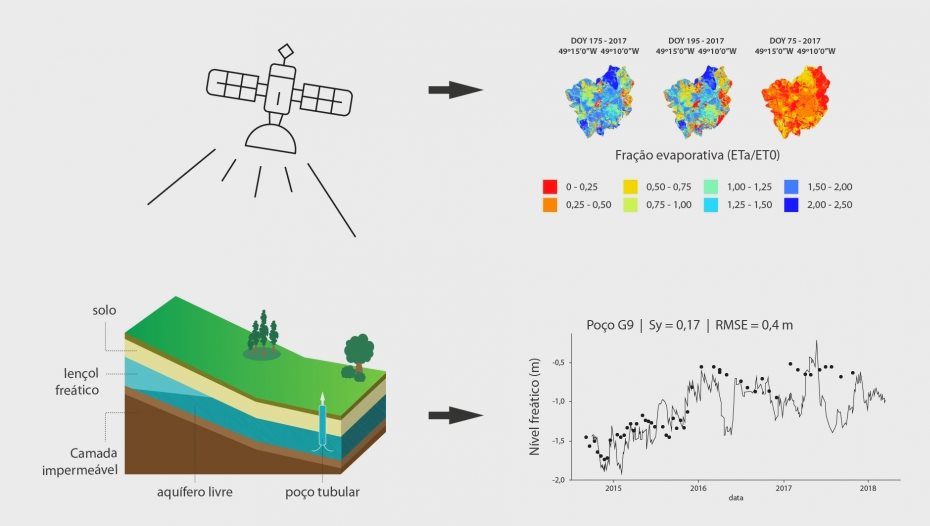 O modelo foi aplicado em imagens dos sensores Sentinel-2 (lançado pela Agência Espacial Europeia, que provê uma resolução de 10 metros) e Modis (da Nasa), geradas entre 2014 e 2018, para calcular o potencial de recarga do aquífero e modelar a variação da profundidade do lençol freático no interior das bacias estudadas. A modelagem foi validada com os dados medidos nos 39 poços e indicou a viabilidade de uso das imagens de satélites para monitorar os impactos nos aquíferos.