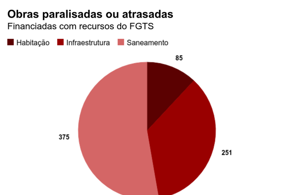 O setor representa cerca de 5,5% do orçamento do fundo – que é alimentado pelos depósitos compulsórios do equivalente a 8% da remuneração de todos os trabalhadores com carteira assinada do país – e responde, no entanto, por 52,7% das obras paralisadas ou atrasadas bancadas com recursos do FGTS.