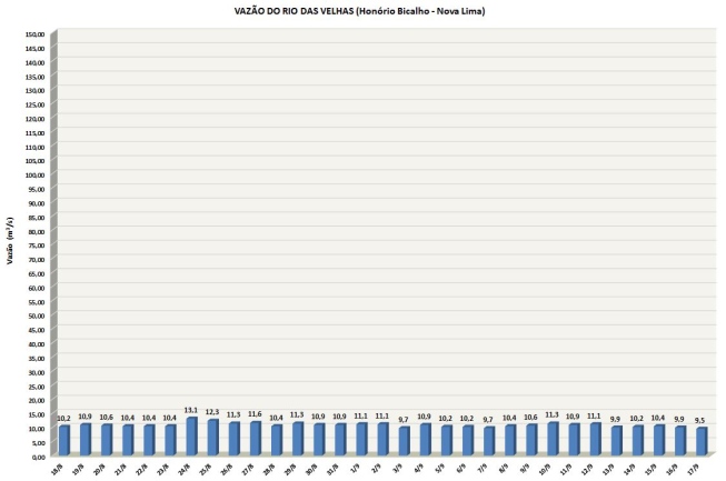 Segundo a empresa, no dia 24 de agosto a vazão chegou a 13,1 m³/s, índice mais alto nos últimos 30 dias. O valor, no entanto vem caindo, como se viu nos dados.