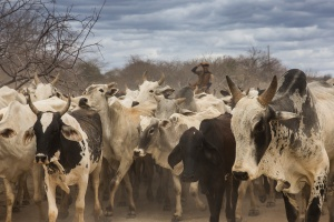 Vaqueiro tocando o gado em fundo de pasto. Foto: Thomas Bauer/CPT