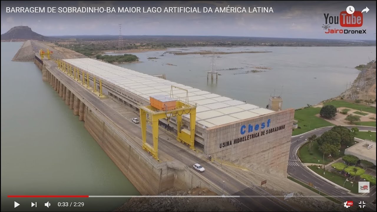 Rio São Francisco-Barragem de Sobradinho-A caixa d'água da transposição, mostra a relevância da barragem de Sobradinho, na Bahia, para a regularização do volume d'água do Rio da Integração Nacional. No momento da gravação das imagens o lago de Sobradinho se encontrava com cerca de 65% de sua capacidade de acumulação que é de 34, 2 Bilhões de metros a produção cúbitos isso depois de ter chegado a apenas 2,4% em 2018. A barragem se destina precipuamente a produção de energia hidrelétrica. Contudo joga papel destacado na irrigação, na piscicultura e na produção de energia fotovoltaica ou energia solar. Portanto, a transposição do São Francisco, para ser bem sucedida, depende muito da manutenção dessa barragem com um volume adequado de água.