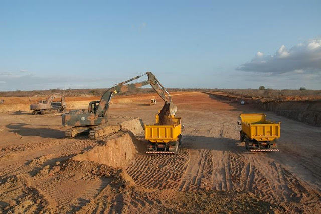 Máquinas em obra.(foto retirada do site http://www.odiariodaregiao.com/transposicao-do-rio-sao-francisco/ )