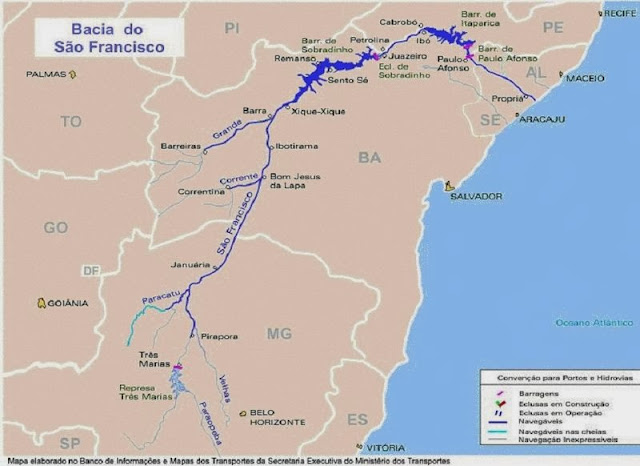 São esses estados que sofrerão com o represamento das águas, sem falar no fato de que aqui as condições climáticas são mais severas, o semiárido castiga, o sol esturrica o solo, e toda comunidade residente na própria bacia amargará essas consequências.
