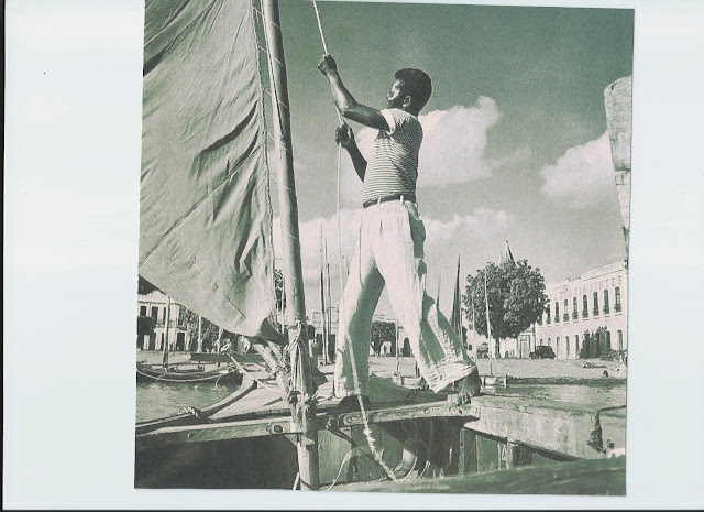 Canoeiro içando a vela de sua "chata". (foto: arquivo Jornalista Nilo Sérgio Pinheiro)
