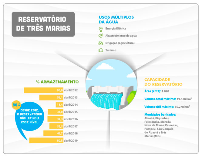 Apesar de ser uma das usinas da Cemig com maior potência instalada (396 MW), Três Marias assume um papel ainda mais essencial quando o assunto é abastecimento de água. Para o gerente da companhia, se não houvesse esse recurso, a população das cidades a jusante e a montante, e o desenvolvimento econômico da região seriam muito prejudicados. “Turismo, aquicultura e pecuária correriam o risco de desaparecer, sem falar em problemas para o abastecimento humano”, acrescentou.
