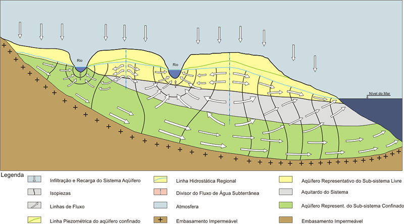 Este trabalho mudou a minha visão sobre a hidrogeologia das águas subterrâneas , até então voltada para as condições de armazenamento e sem conexões hidráulicas com as águas fluviais. Vi que o armazenamento continua importante, mas na medida em que ele cria o escoamento que sai no leito de rede da potamográfica superficial (rios, lagos, lagoas etc.) e nos oceanos. Se rebaixarmos os níveis dos aquíferos , rios secam e a água não chega ao oceano, mantendo a interface água doce/água salgada em suas posições naturais, normais e históricas.