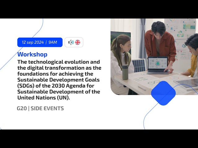This workshop, “The technological evolution and the digital transformation as the foundations for achieving the SDGs of the 2030 Agenda for Sustainable Development of the UN”, has the objective to explore how actions and initiatives can be leveraged to promote a sustainable and inclusive future, boosting the economic and social development of the G20 countries and, consequently, of the broader international community.