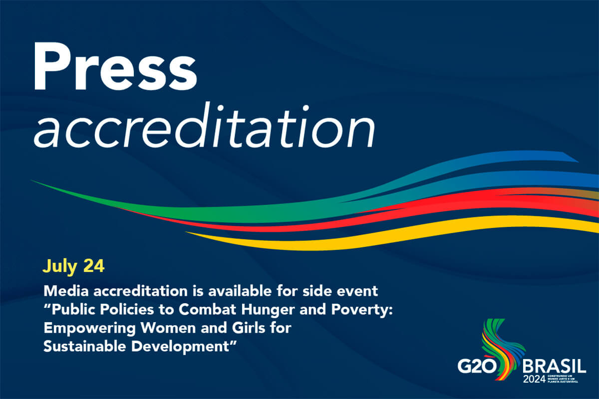 Accreditation is now open to the media for event “Public Policies to Combat Hunger and Poverty: Empowering Women and Girls for Sustainable Development” which will be held in parallel with the meeting of the G20 Task Force for the Establishment of a Global Alliance against Hunger and Poverty, in Rio de Janeiro, on July 24.