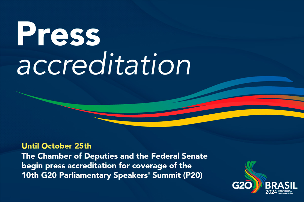 The Chamber of Deputies and the Federal Senate begin press accreditation for coverage of the 10th G20 Parliamentary Speakers' Summit (P20)