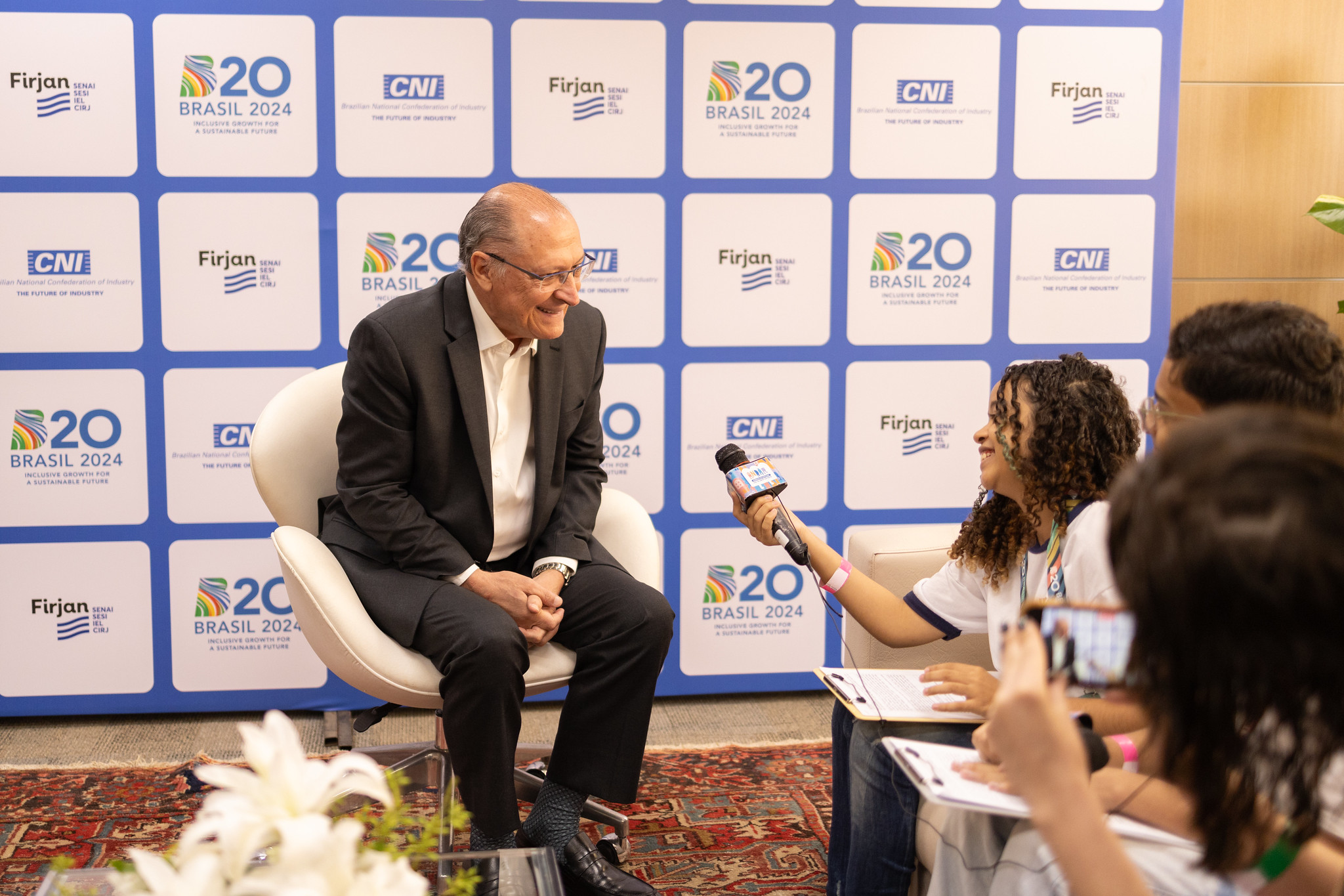 “It makes all sense to meet with you today at Firjan to talk about the B20 and the G20, and about the largest countries and economies of the world. It has everything to do with you, young students, because President Lula, who presides over the G20, has prioritized combating hunger, promoting development, creating jobs, and preserving the environment. These themes speak to the present and the future. And the future starts today; it goes by the name of Kamilly, of Jhonata… it has everything to do with you”, replied Alckmin, when asked about the link between the G20 and the students.