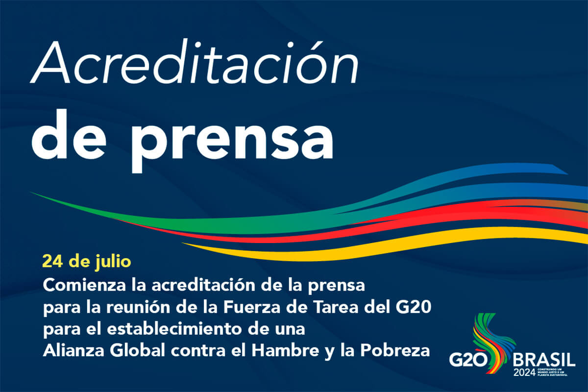 Los profesionales interesados en realizar la cobertura periodística de la reunión de la Fuerza de Tarea del G20 para el establecimiento de una Alianza Global contra el Hambre y la Pobreza, en Río de Janeiro, el 24 de julio, ya pueden solicitar su acreditación.